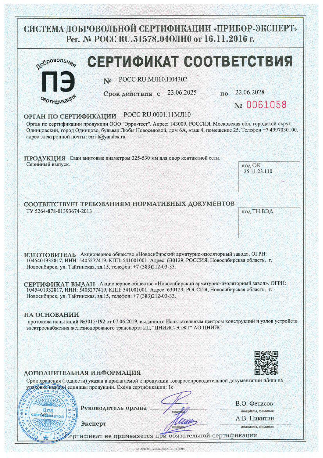 С 2018 г. Запущено производство винтовых свай по проектам 3015, 6228, 7154и.