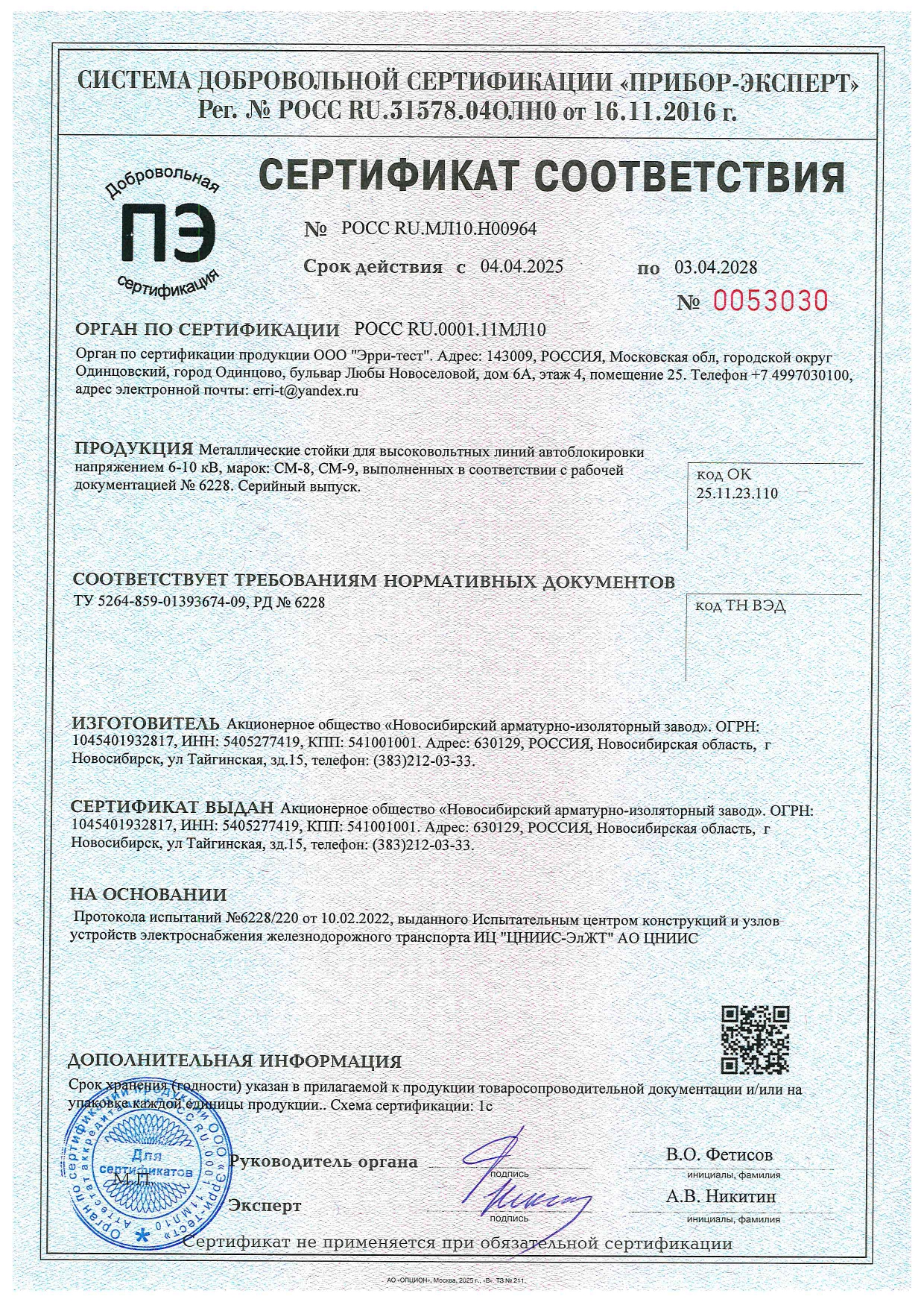 С 2024 г. АО "НАИЗ" прошел сертификацию и начал выпуск стоек металлических из гнутого и прямого швеллера по проекту 6226и.